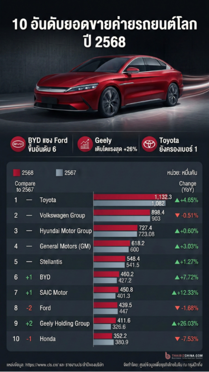 แบรนด์จีน 3 รายติดอันดับ Top 10 ยอดขายรถยนต์โลกปี 2568