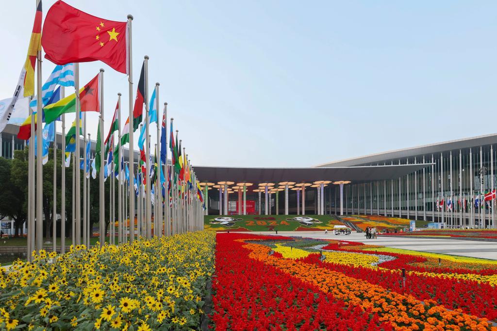 这是2024年11月4日拍摄的第七届中国国际进口博览会举办场地——国家会展中心(上海)外景。记者王翔摄