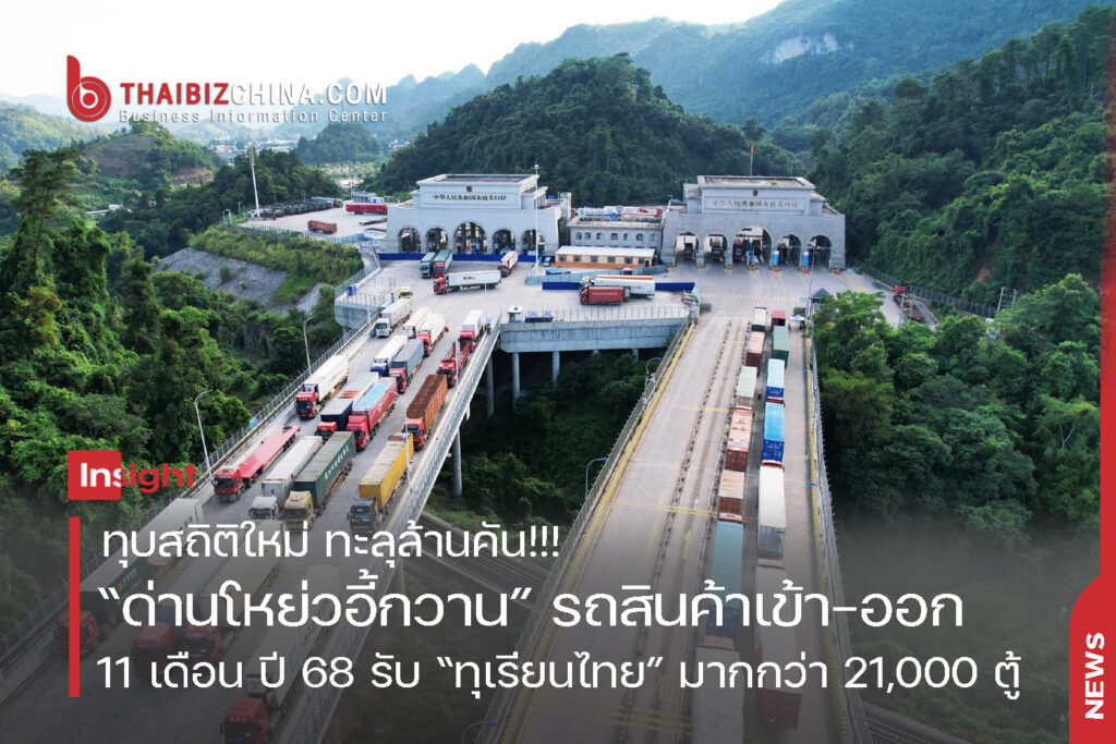ทะลุล้าน! รถสินค้าเข้า-ออกที่ “ด่านโหย่วอี้กวาน” ของกว่างซี ทุบสถิติใหม่ และ 11 เดือนแรก ปี 2568 รับ “ทุเรียนไทย” มากกว่า 20,000 ตู้