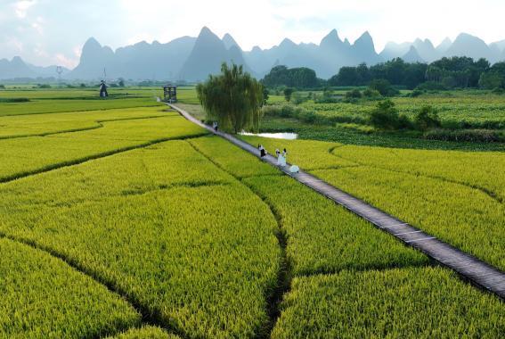 หมู่บ้านกู่จ้าย อำเภอหลิ่วเฉิง เมืองหลิ่วโจว เขตกวางสี ทางใต้ของจีน ซึ่งเป็นที่รู้จักในชื่อว่า คลังธัญพืชของทางตอนเหนือของเขตกวางสี เมื่อเร็ว ๆ นี้ ข้าวสาลีในทุ่งของหมู่บ้านกู่จ้ายได้เข้าสู่ช่วงการสุดงอม ผสมผสานกับภูเขา ถนน และหมู่บ้าน กลายเป็นทัศนียภาพชนบทที่สวยงาม ดึงดูดนักท่องเที่ยวจากพื้นที่ใกล้เคียงเดินทางไปเยี่ยมชม หมู่บ้านกู่จ้ายเป็นที่ชุมนุมของชนเผ่ามู่เหล่าแห่งเดียวของจีน