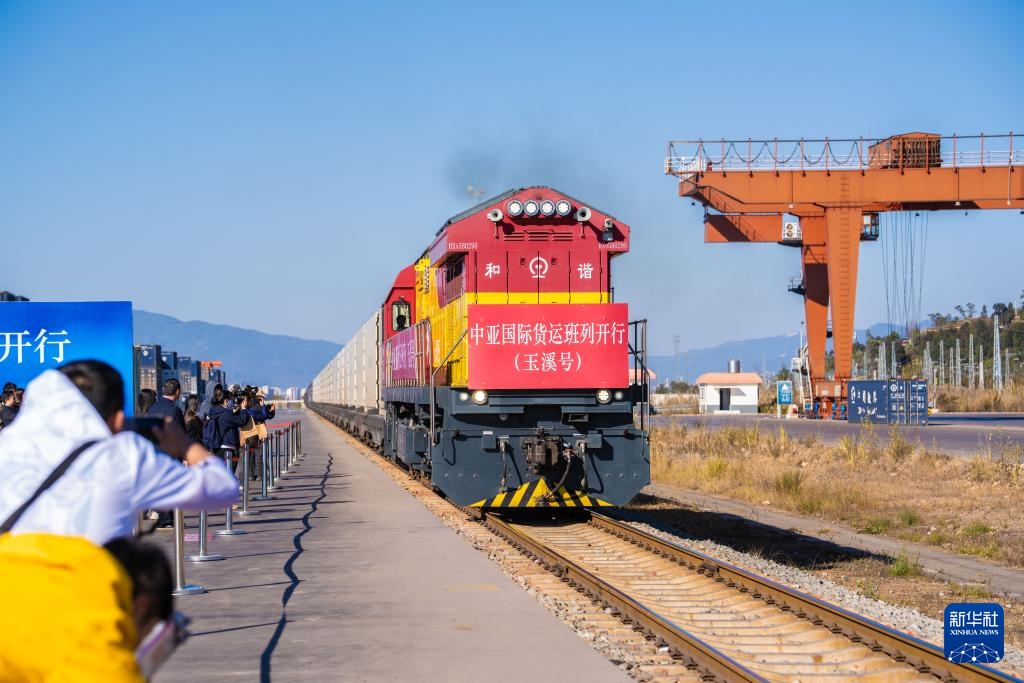 Ngày 26 tháng 1, tàu chở hàng quốc tế Trung Á trên tuyến đường sắt Trung - Lào khởi hành từ ga Nghiên Hòa, thành phố Ngọc Khê, tỉnh Vân Nam, Trung Quốc.